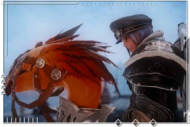 Chocobo stewardship was never something Shri'ke intended to pursue, but when the egg was placed in his hands, he felt he had little choice. Thus did Albrecht come into his care; named for one of his unit, the massive draught chocobo has proven a loyal companion. He's grown quite fond of Leon, no matter how the Very Tall Man balks at him.